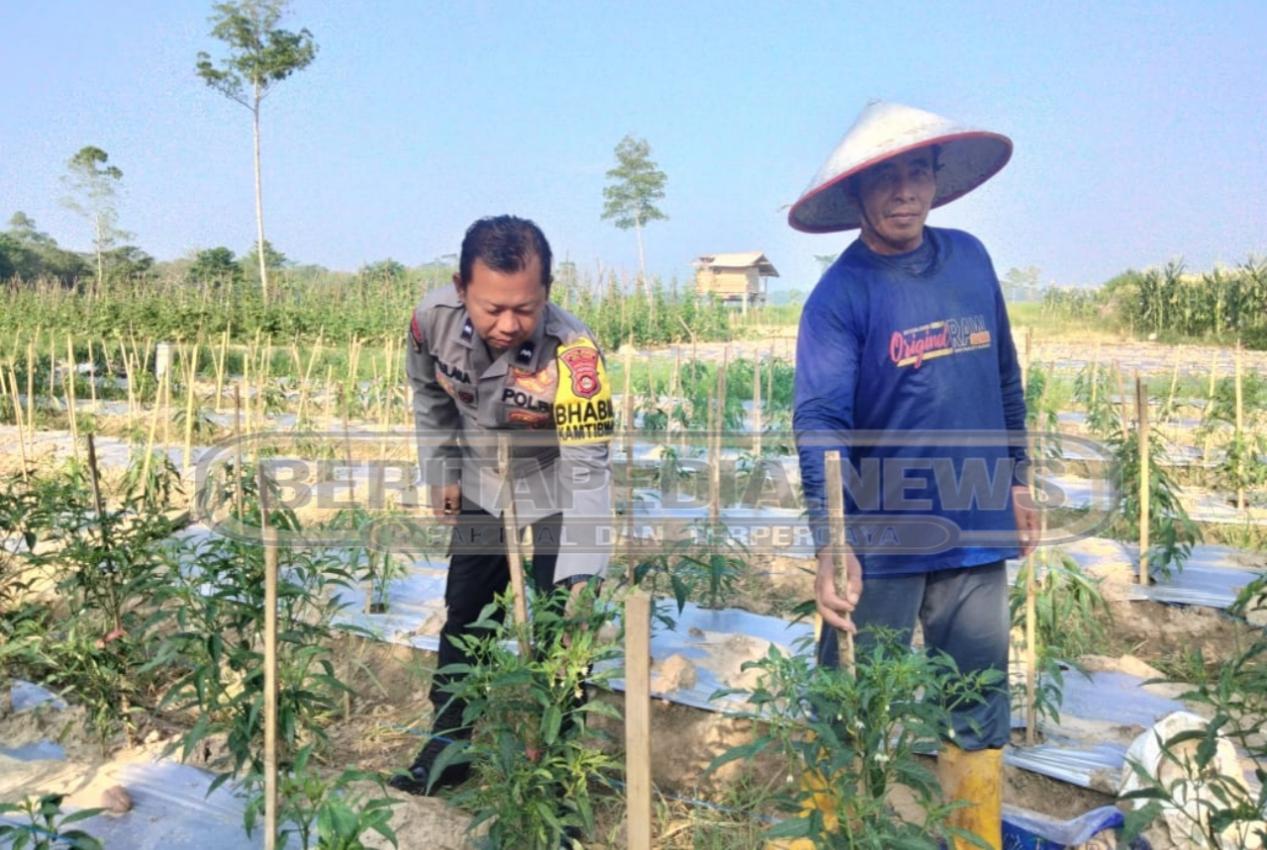 BeritaPedia.news, OKU Timur – Dalam rangka mendukung program ketahanan pangan nasional, personel Polsek Madang Suku I terus aktif melakukan pendampingan dan pengecekan terhadap lahan pertanian milik warga. Salah satunya dilakukan oleh Bhabinkamtibmas Desa Rasuan, Aipda Maulana Malik, yang meninjau langsung lahan tanaman cabe milik warga setempat, Jumat (05/09/2025).