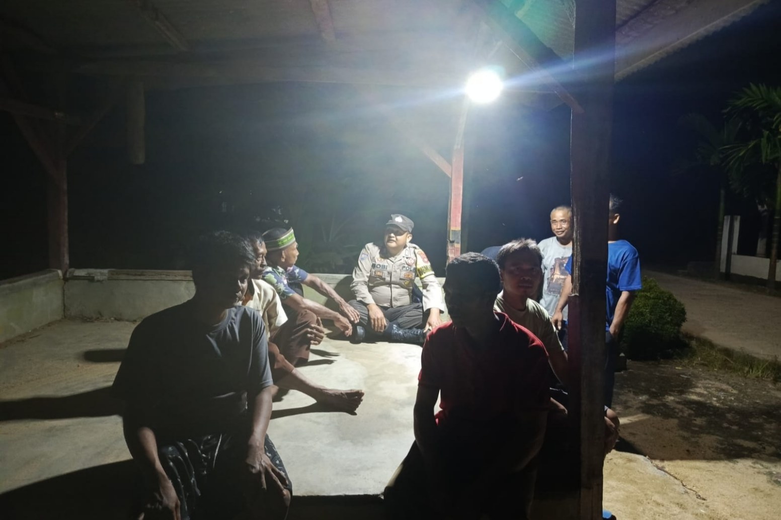 Kegiatan tersebut dilakukan sebagai bentuk kehadiran Polri di tengah masyarakat sekaligus memastikan pelaksanaan ronda malam berjalan dengan aman, tertib, dan efektif. Bripka Bobi Juanda tampak menyambangi pos ronda serta berdialog langsung dengan warga yang sedang melaksanakan kegiatan ronda malam.