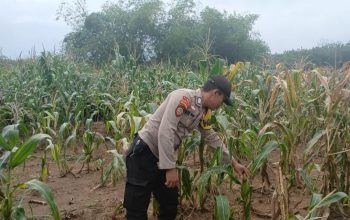 Bripka Bobi Juanda menyampaikan bahwa monitoring dilakukan untuk memastikan kondisi tanaman jagung tumbuh dengan baik serta memberikan motivasi kepada para petani agar terus semangat dalam mengelola lahan pertanian.