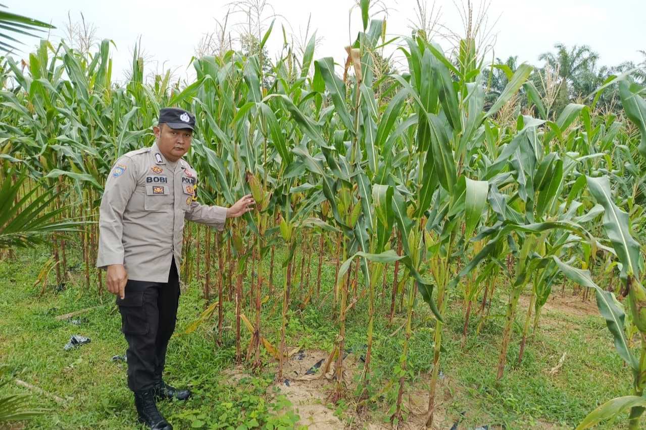 Bripka Bobi Juanda Monitoring Lahan Ketahanan Pangan Tanaman Jagung di Wilayah Polsek Madang Suku I