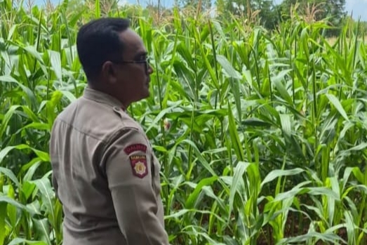 Monitoring dilakukan langsung oleh anggota Bhabinkamtibmas Polsek BP Peliung, Aiptu Priyo, di lahan seluas satu hektare yang dimanfaatkan sebagai lahan produktif tanaman jagung.