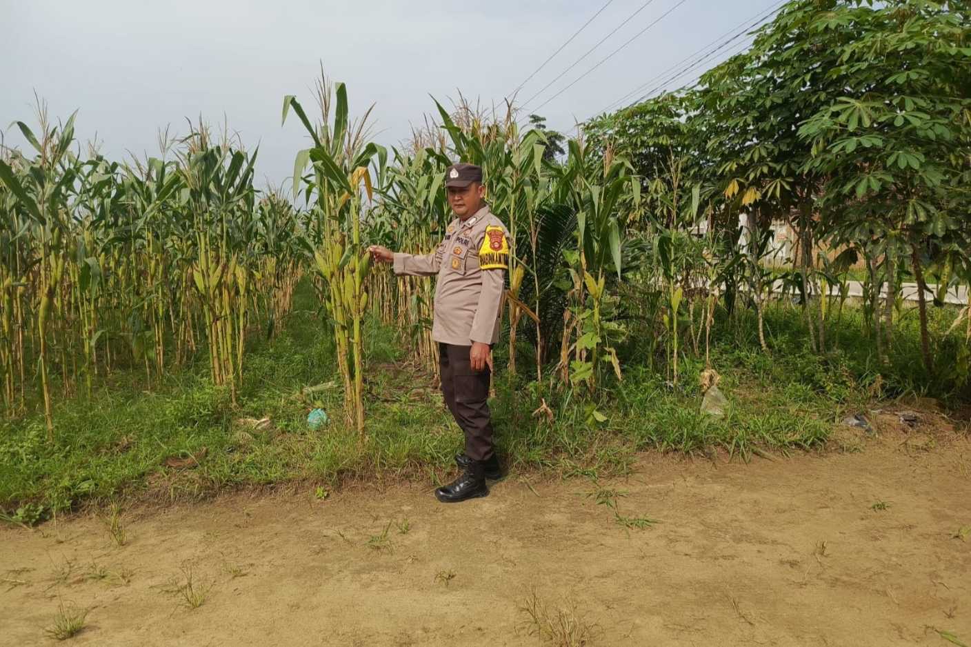 Dalam kegiatan tersebut, Bripka Bobi Juanda melakukan pengecekan langsung terhadap kondisi tanaman jagung, mulai dari pertumbuhan, perawatan, hingga kesiapan lahan, guna memastikan hasil panen dapat maksimal.
