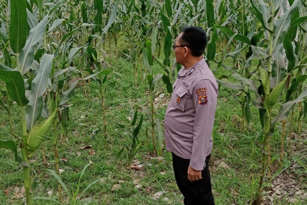 Kanit Patroli Polsek BP Peliung Pantau Lahan Jagung di Bantan Pelita