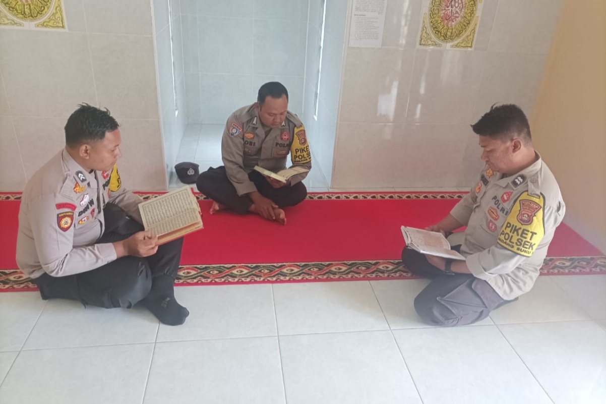 BeritaPedia.news, OKU Timur — Dalam rangka memperkuat keimanan dan mempererat kolektif antarpersonel, Aiptu Andres memimpin kegiatan Khotmil Qur’an dan doa bersama di Mushola Mapolsek Madang Suku I, Senin (23/2/2026).