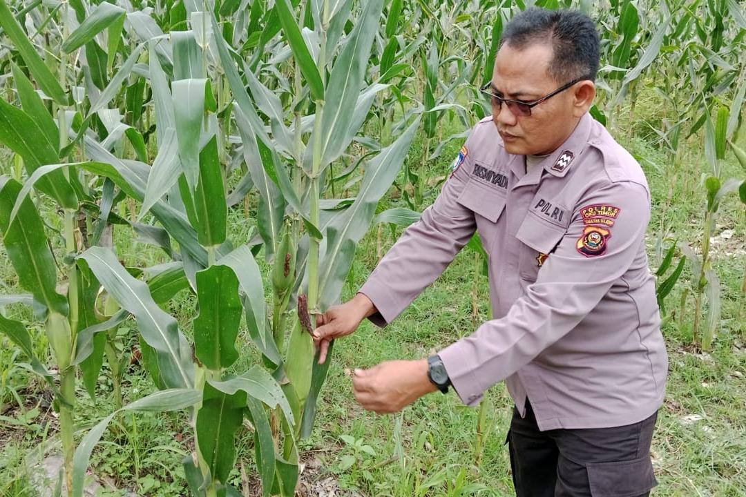 Kegiatan tersebut dilakukan langsung oleh Aiptu Rusmiyadi, di lahan seluas satu hektar yang dimanfaatkan sebagai area tanam jagung produktif.