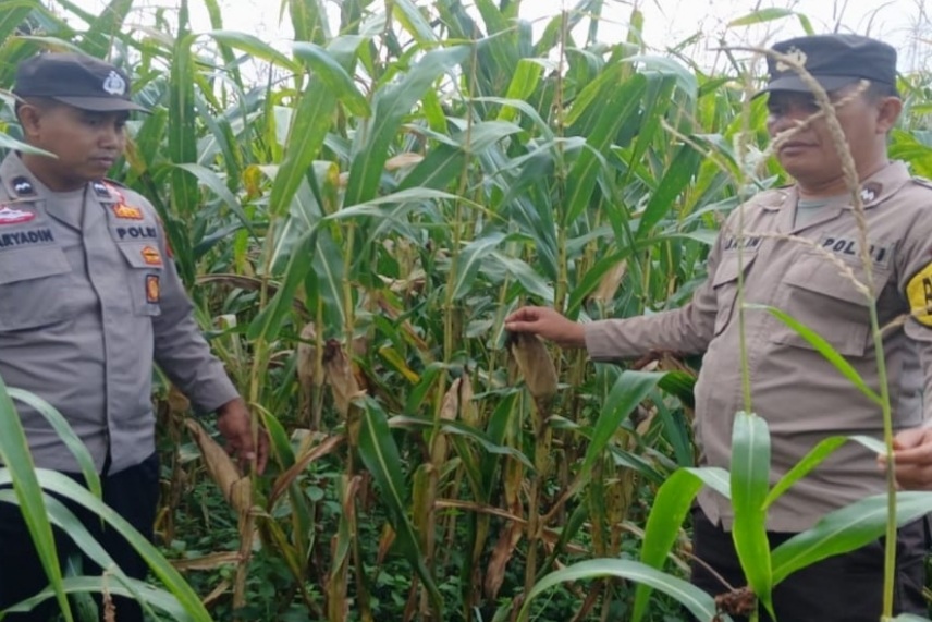 Dalam kegiatan tersebut, Aipda Barlin melakukan pengecekan kondisi tanaman, pertumbuhan jagung, serta berdialog dengan warga guna mengetahui perkembangan dan kendala yang dihadapi petani di lapangan.