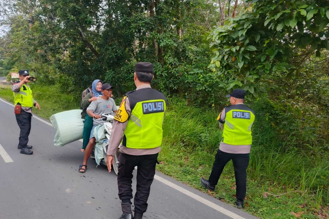 Dalam pelaksanaannya, petugas melakukan pemeriksaan kendaraan, identitas pengendara, serta memberikan imbauan kepada masyarakat agar tetap mematuhi peraturan dan menjaga keamanan lingkungan.