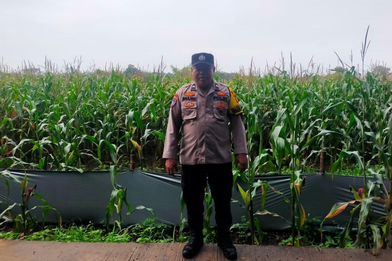 Dalam pelaksanaannya, Aipda Maulana melakukan pemantauan langsung terhadap kondisi pertumbuhan tanaman jagung sekaligus memastikan perawatan tanaman berjalan optimal.