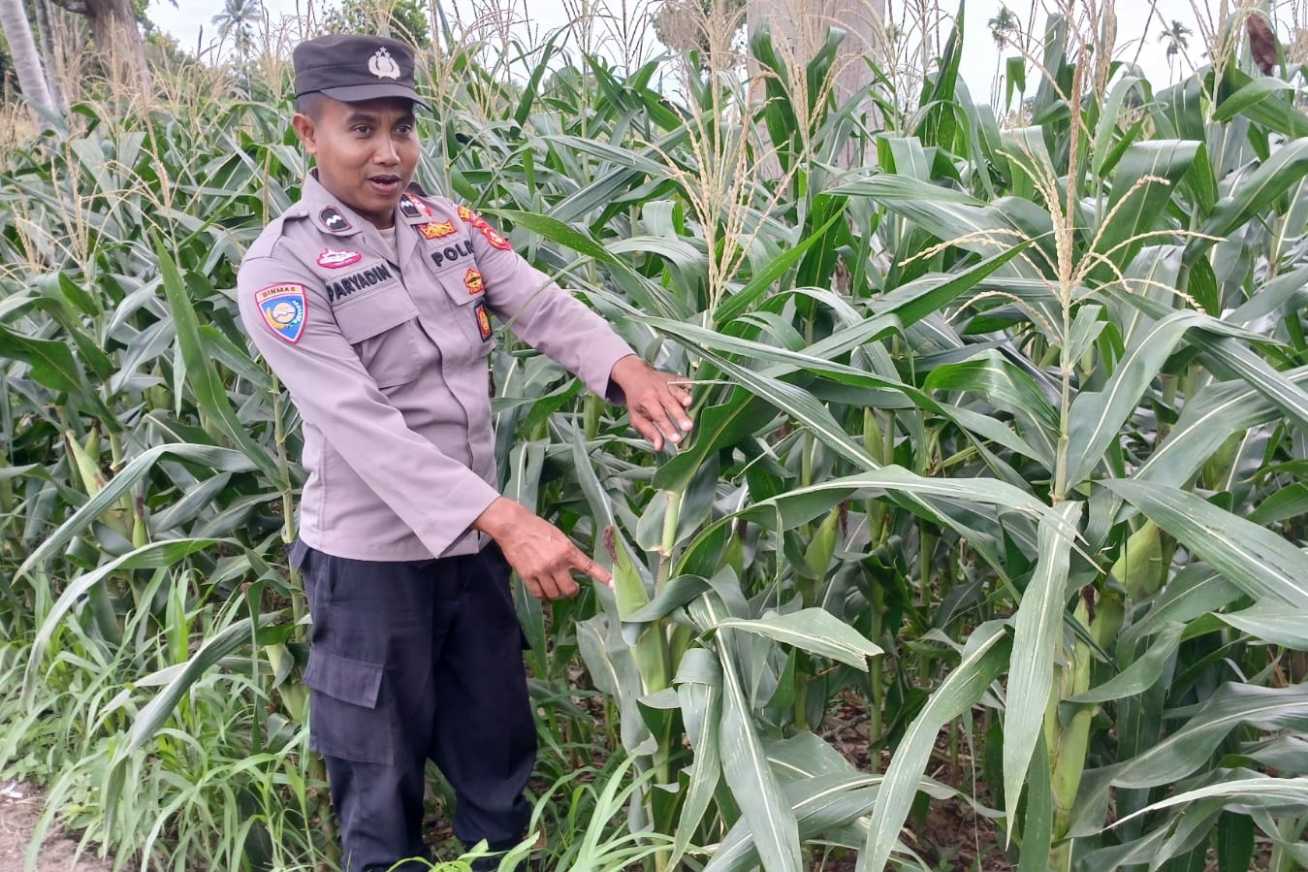 Dalam pelaksanaannya, Aipda Faryadin memantau secara langsung kondisi pertumbuhan tanaman jagung serta memastikan perawatan tanaman berjalan optimal.
