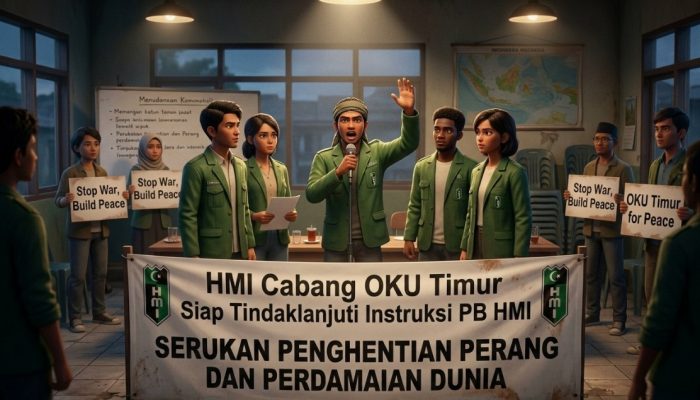 BeritaPedia.news, OKU Timur — Pengurus Himpunan Mahasiswa Islam (HMI) Cabang OKU Timur menyatakan kesiapan untuk menindaklanjuti instruksi dari Pengurus Besar Himpunan Mahasiswa Islam (PB HMI) terkait seruan aksi solidaritas dan kampanye digital bertema “Hentikan Kejahatan Perang AS–Israel dan Wujudkan Perdamaian Dunia.”