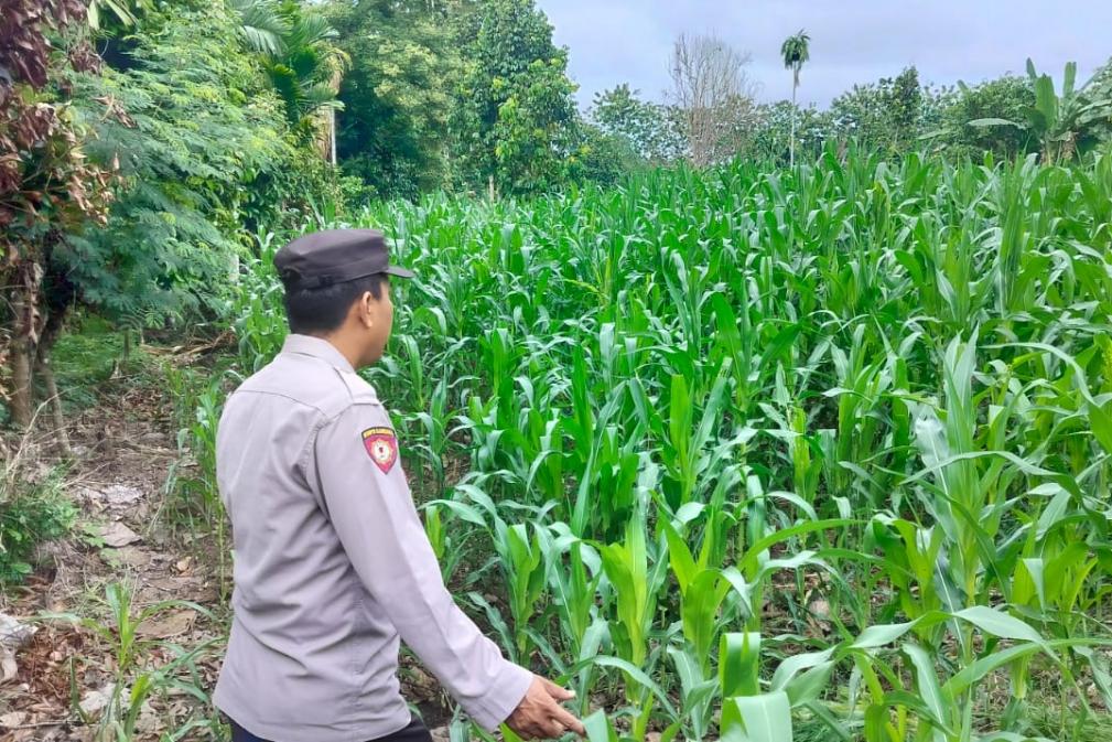 Dalam kegiatan tersebut, Aipda Dedi Darmanto melakukan kontrol dan pemantauan kondisi tanaman jagung guna memastikan pertumbuhannya berjalan dengan baik serta bebas dari gangguan hama maupun faktor lain yang dapat menghambat produktivitas.