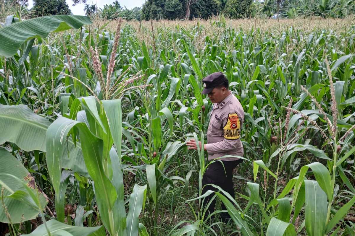 Dalam kegiatan itu, AIPDA Barlin meninjau kondisi tanaman sekaligus memastikan pertumbuhan jagung berjalan dengan baik. Selain itu, kegiatan ini juga bertujuan memberikan motivasi kepada masyarakat agar terus memanfaatkan lahan kosong yang dimiliki untuk kegiatan produktif.