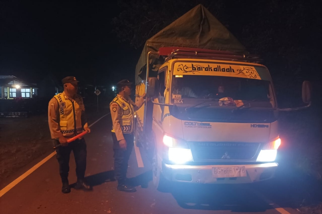 Patroli yang digelar pada malam hari ini menyasar sejumlah titik rawan di jalan lintas yang kerap dilalui kendaraan dari luar daerah. Dalam kegiatan tersebut, petugas melakukan pemeriksaan terhadap kendaraan yang melintas serta memberikan imbauan kepada para pengendara agar tetap mematuhi aturan lalu lintas dan menjaga keamanan selama berkendara.
