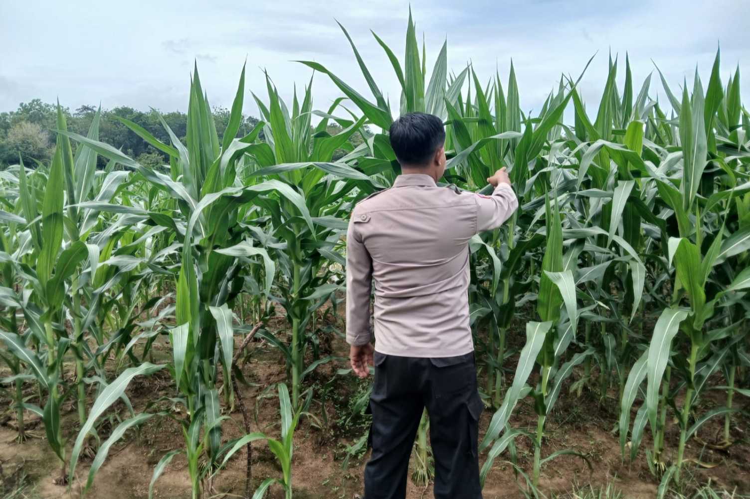 AIPDA Faryadin mengatakan kegiatan pengecekan ini dilakukan secara berkala untuk memastikan kondisi tanaman jagung tetap terjaga dan tumbuh dengan baik hingga masa panen.