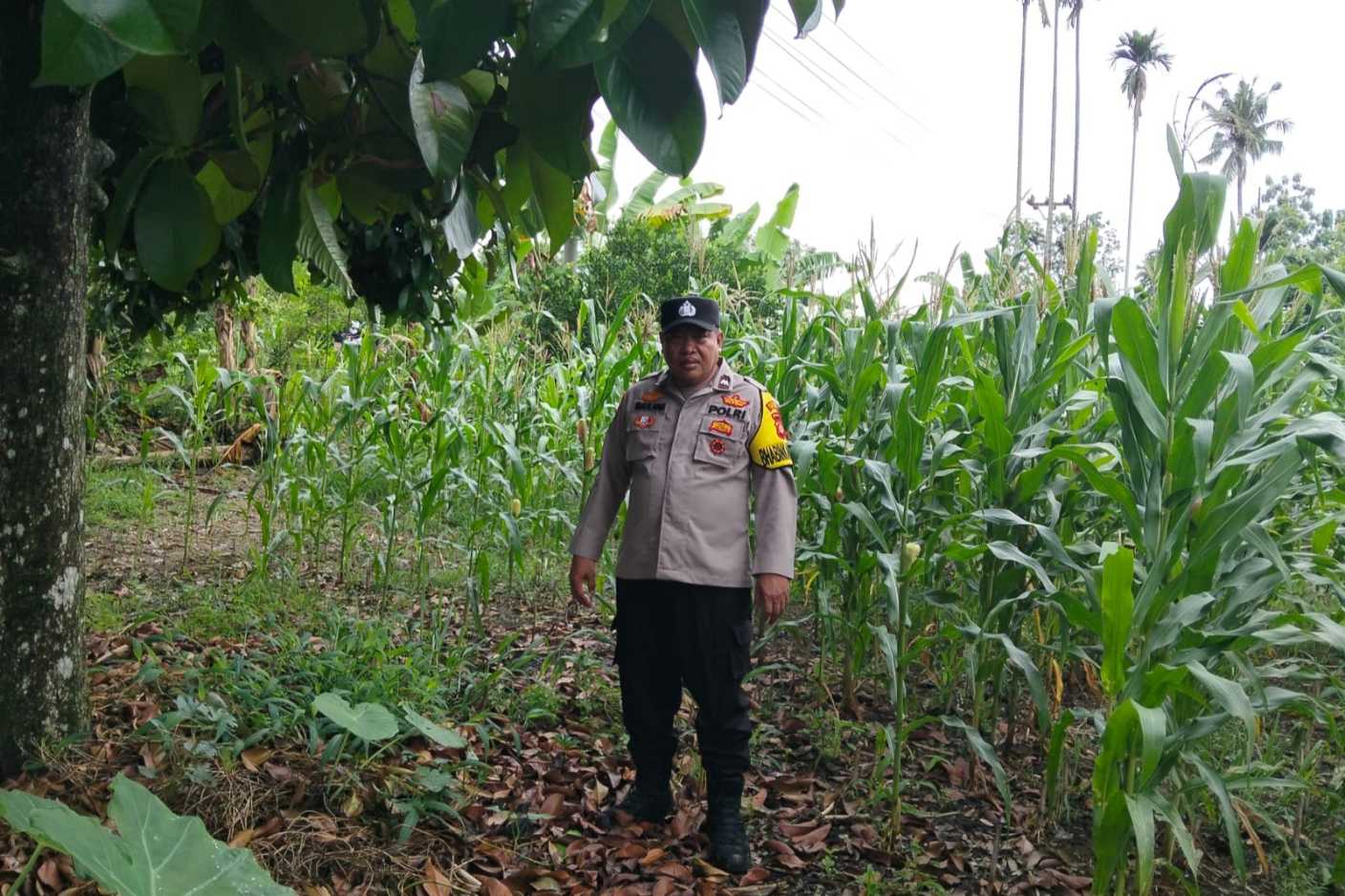 Dalam kegiatan tersebut, Aipda Maulana melakukan pemantauan langsung terhadap kondisi tanaman guna memastikan pertumbuhan jagung berjalan dengan baik serta mendapatkan perawatan yang optimal.