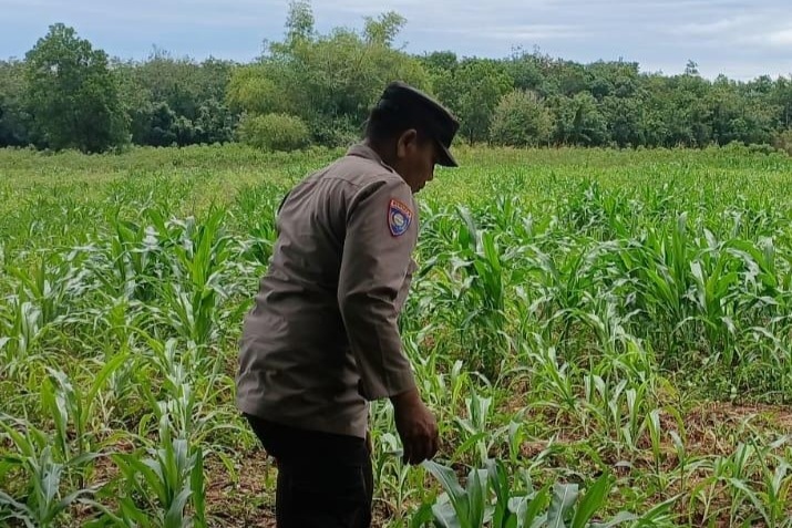 Dukung Ketahanan Pangan, Kanit Bimas Polsek BP Peliung Monitoring Lahan Jagung di Desa Pahang Asri