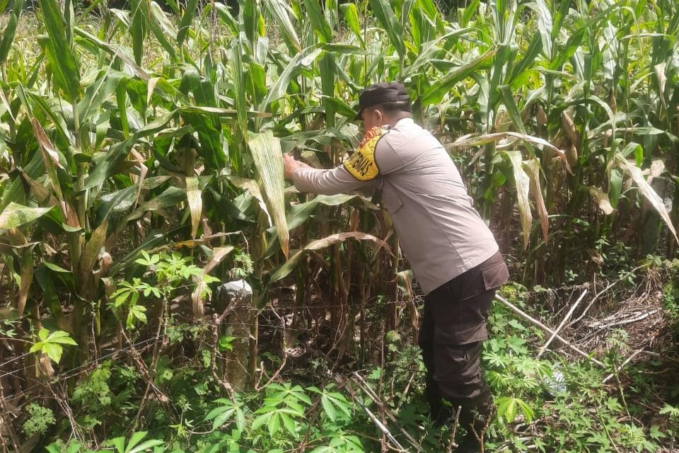 Bhabinkamtibmas Polsek BP Peliung Lakukan Pemantauan Tanaman Jagung di Desa Bantan