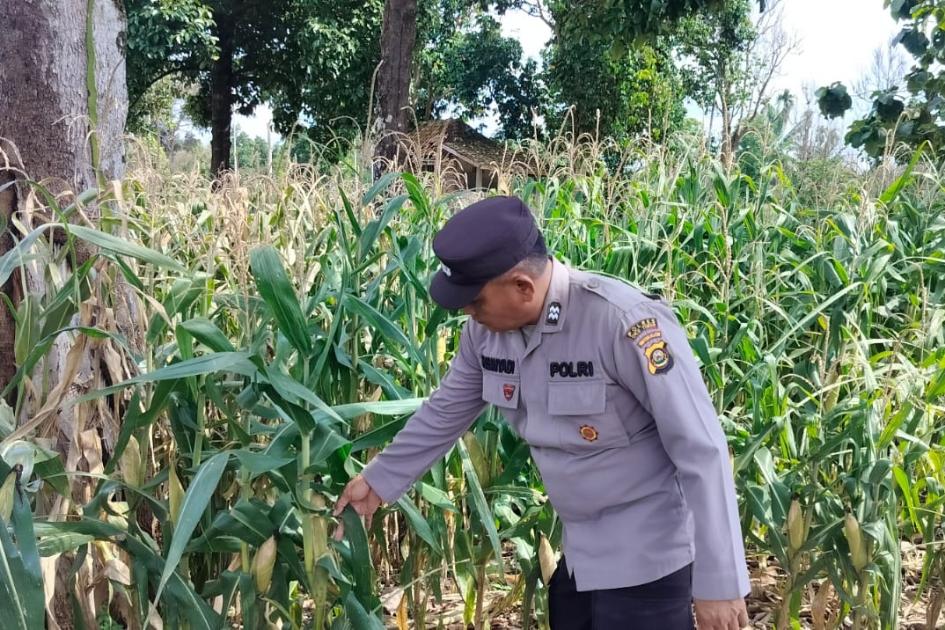 Dalam kegiatan tersebut, Aiptu Rusmiyadi melakukan kontrol langsung terhadap kondisi tanaman guna memastikan pertumbuhan jagung berjalan dengan baik serta mendapatkan perawatan yang optimal dari para petani.