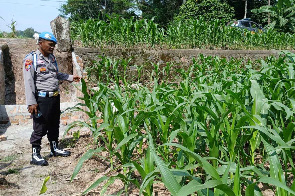 Dalam kegiatan tersebut, Aipda Faryadin melakukan pemantauan langsung terhadap kondisi tanaman jagung guna memastikan pertumbuhan tanaman berjalan dengan baik serta mendapatkan perawatan yang optimal.