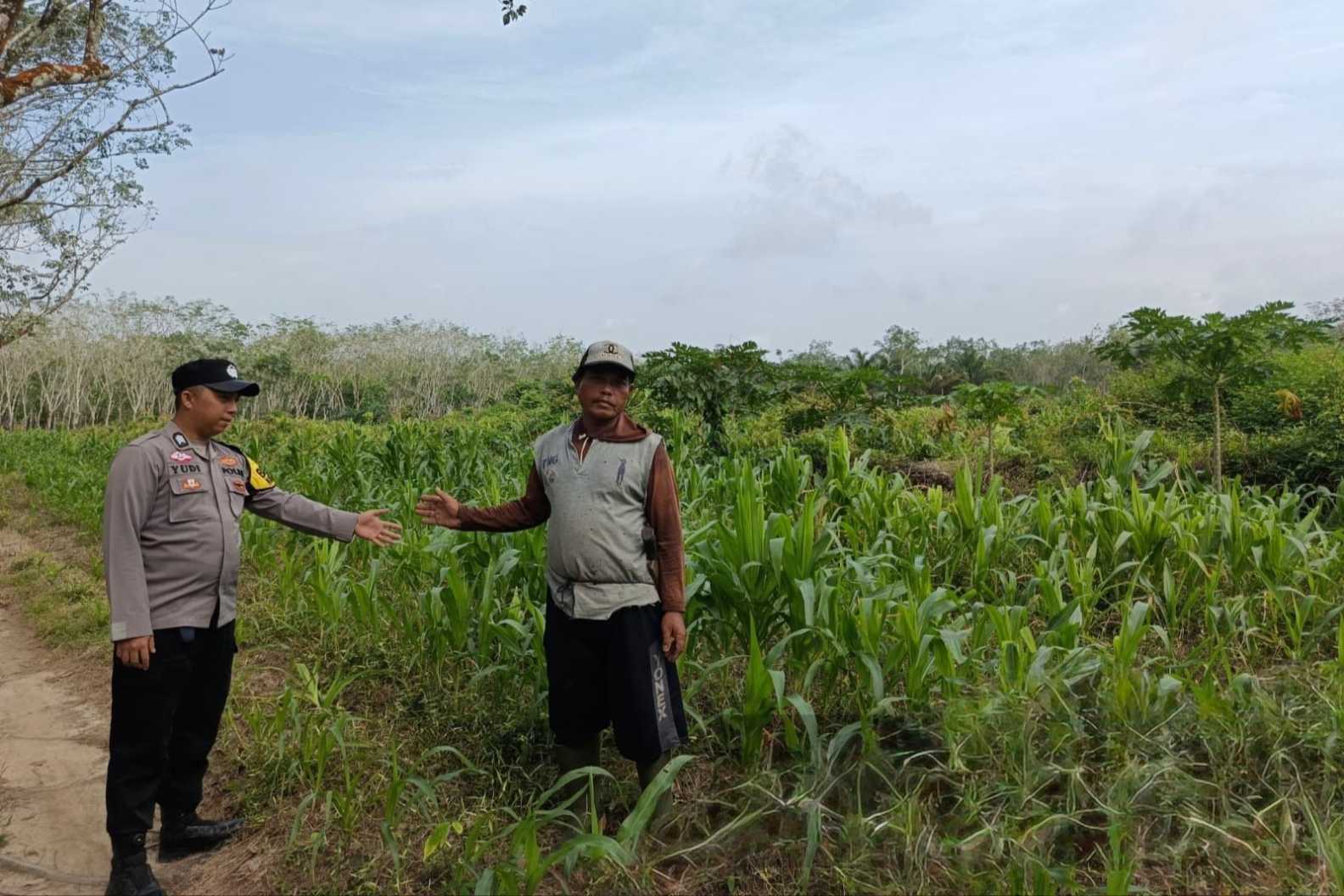 Polisi Turun ke Lahan, Brigpol Suyudi Monitoring Tanaman Jagung Warga di OKU Timur