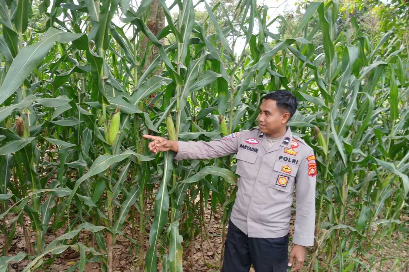“Kami turun langsung ke lapangan untuk mengecek kondisi tanaman jagung, mulai dari pertumbuhan hingga perawatannya, agar hasil panen nantinya bisa maksimal,” ujar Aipda Faryadin.