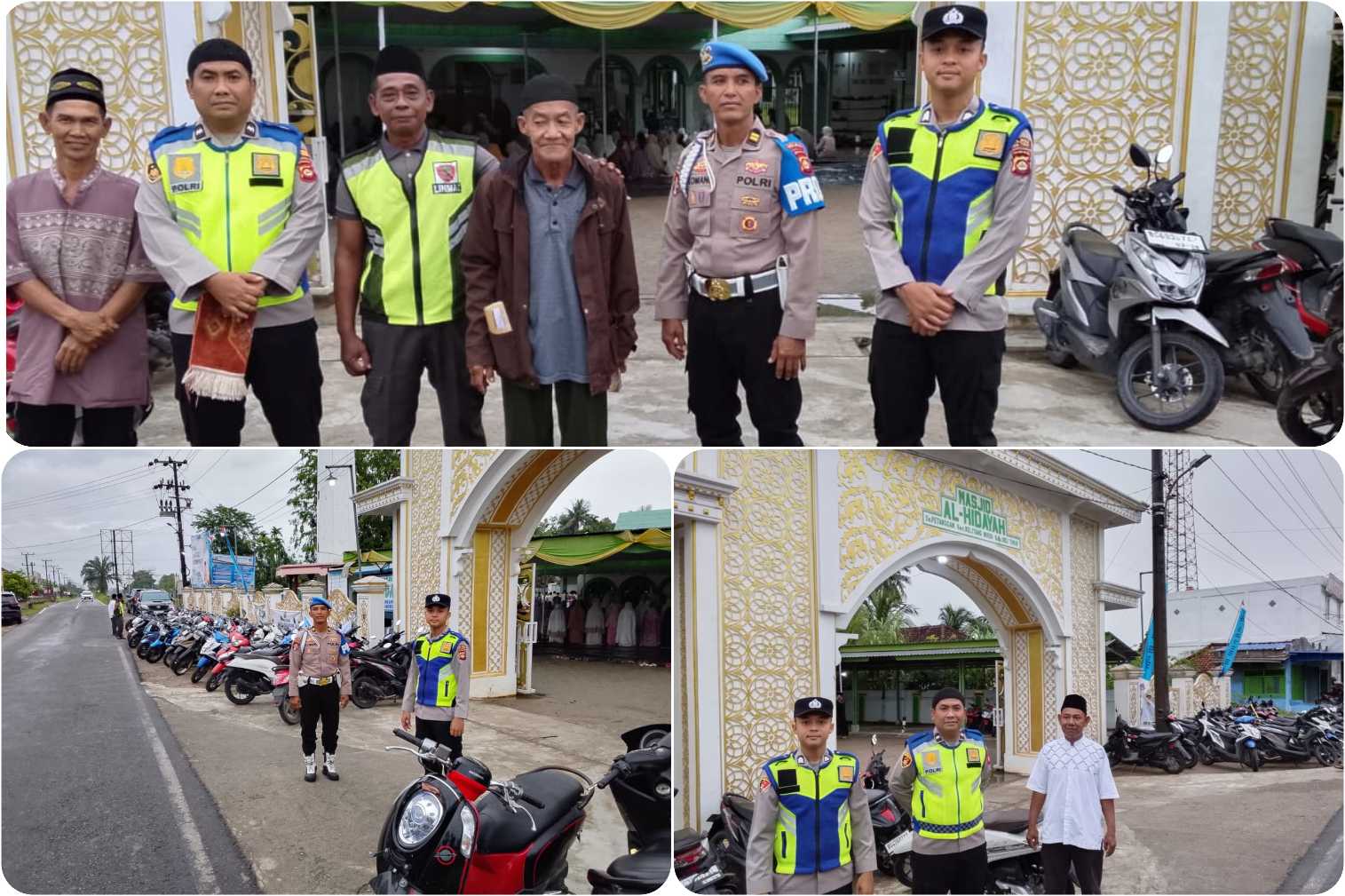 Selain melakukan pengamanan di sekitar area masjid, petugas juga memantau arus lalu lintas di sekitar lokasi guna mengantisipasi kepadatan kendaraan jamaah.