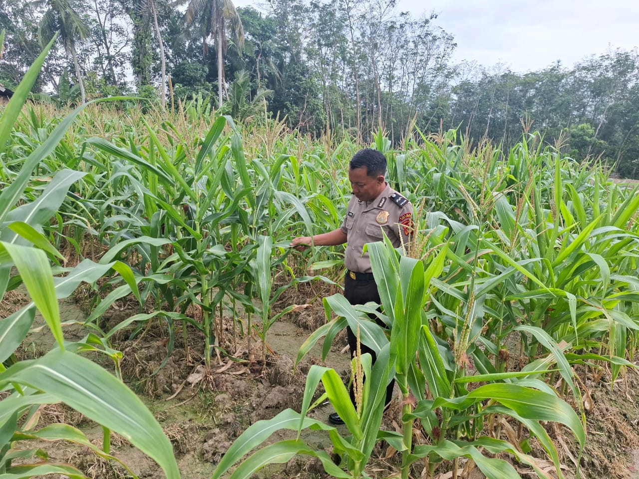 “Kami melakukan pengecekan langsung untuk melihat perkembangan tanaman jagung milik warga, sekaligus memberikan semangat agar petani terus mengelola lahannya dengan baik,” ujar Aipda Joko Prayitno.