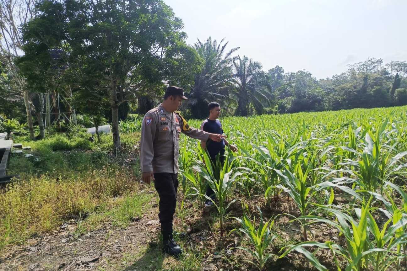 Pada Rabu, 25 Maret 2026, Bhabinkamtibmas Polsek Madang Suku I, Bripka Bobi Juanda, melaksanakan pengecekan perkembangan dan pertumbuhan tanaman jagung di Desa Lubuk Harjo, Kecamatan Belitang Madang Raya, Kabupaten OKU Timur.