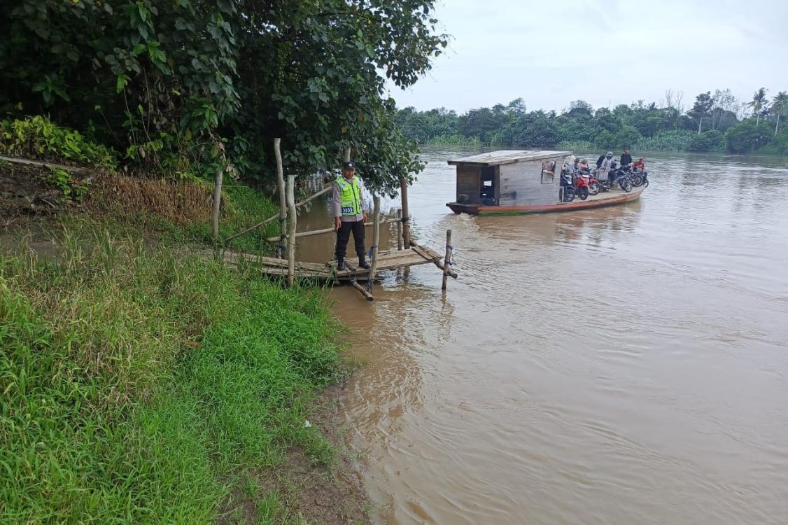 Monitoring dilakukan oleh Bripka Bobi Juanda bersama Briptu Dwi Widianto dengan menyasar kondisi debit air serta dampaknya terhadap aktivitas masyarakat dan pemukiman di sekitar aliran sungai.