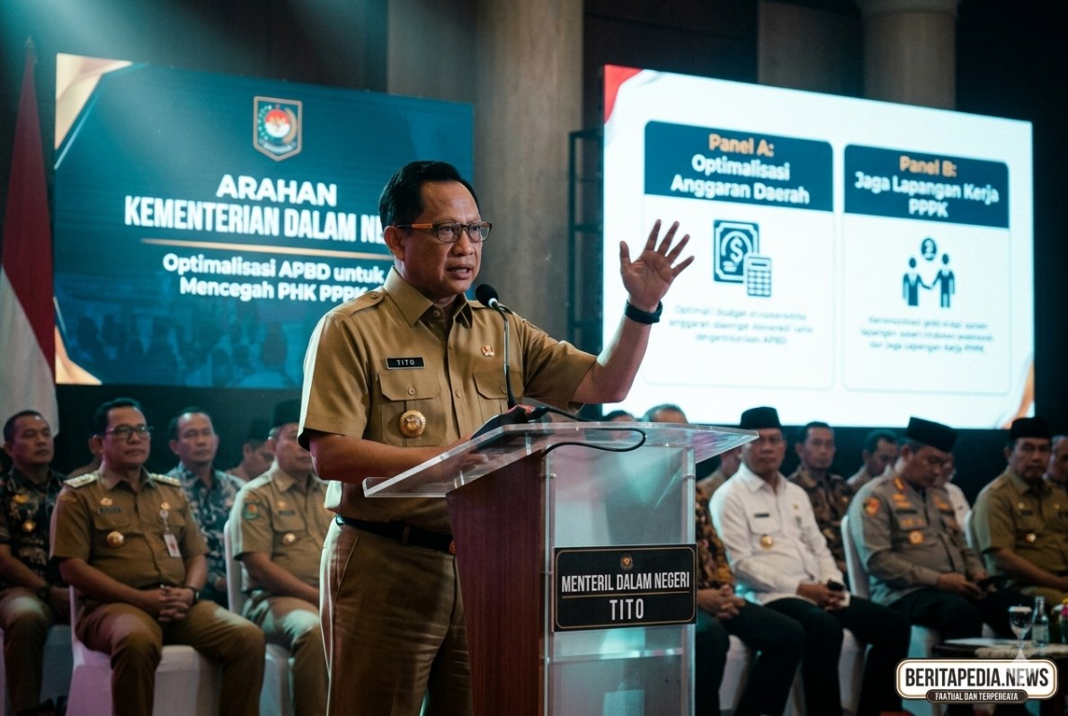 BeritaPedia.news, Jakarta — Menteri Dalam Negeri Tito Karnavian kembali mengingatkan pemerintah daerah agar segera berbenah dalam pengelolaan anggaran, khususnya dengan meningkatkan Pendapatan Asli Daerah (PAD) dan menekan belanja non-prioritas. Langkah ini dinilai krusial untuk mengantisipasi potensi pemutusan hubungan kerja (PHK) terhadap Pegawai Pemerintah dengan Perjanjian Kerja (PPPK).