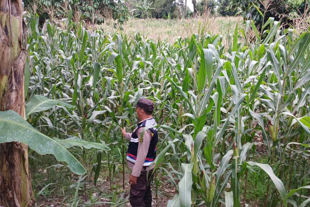 Dalam kegiatan tersebut, Aiptu Barlin turun langsung ke lokasi untuk mengecek kondisi tanaman jagung serta memastikan pertumbuhannya berjalan dengan baik.
