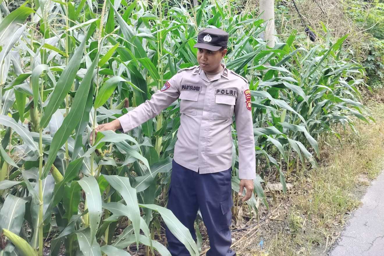Dalam kegiatan tersebut, Aipda Faryadin melakukan kontrol secara menyeluruh terhadap kondisi tanaman jagung guna memastikan pertumbuhan berjalan optimal serta bebas dari kendala yang dapat menghambat hasil panen.