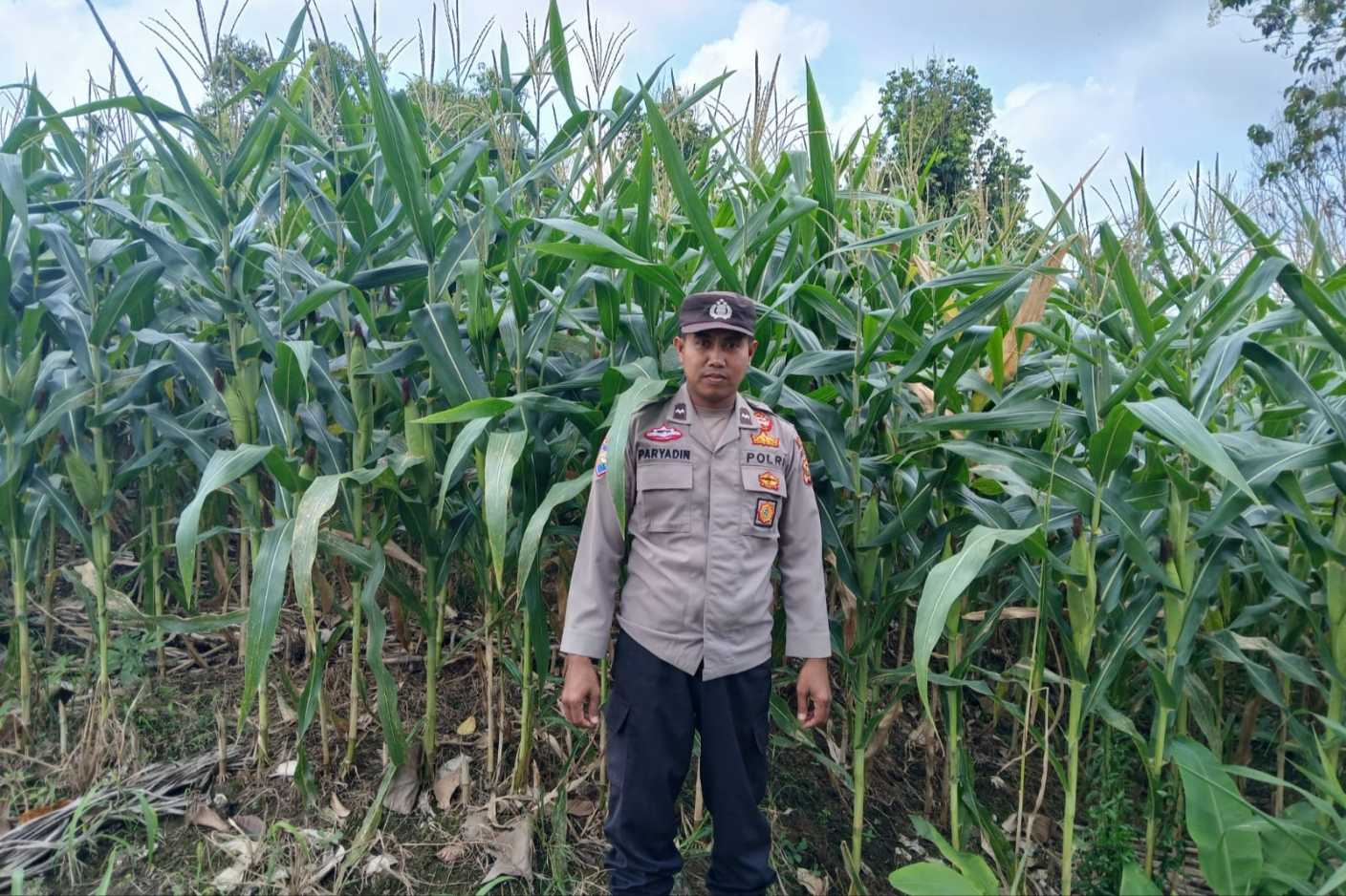 Dalam kegiatan tersebut, Aipda Faryadin memastikan kondisi tanaman jagung tetap terjaga serta memonitor pertumbuhan tanaman agar dapat menghasilkan panen yang optimal.