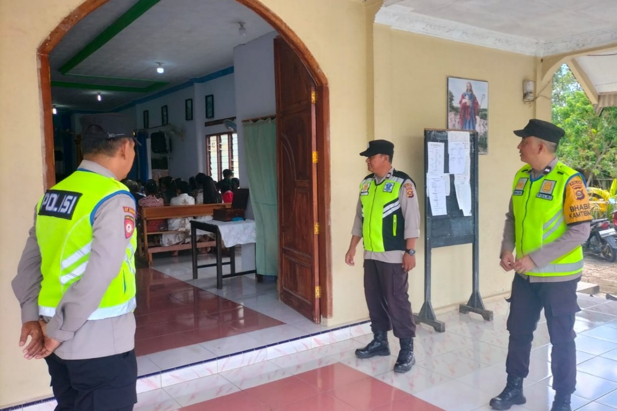 Selain pengamanan di dalam area gereja, personel juga melakukan pengawasan di sekitar lokasi guna mengantisipasi potensi gangguan kamtibmas.