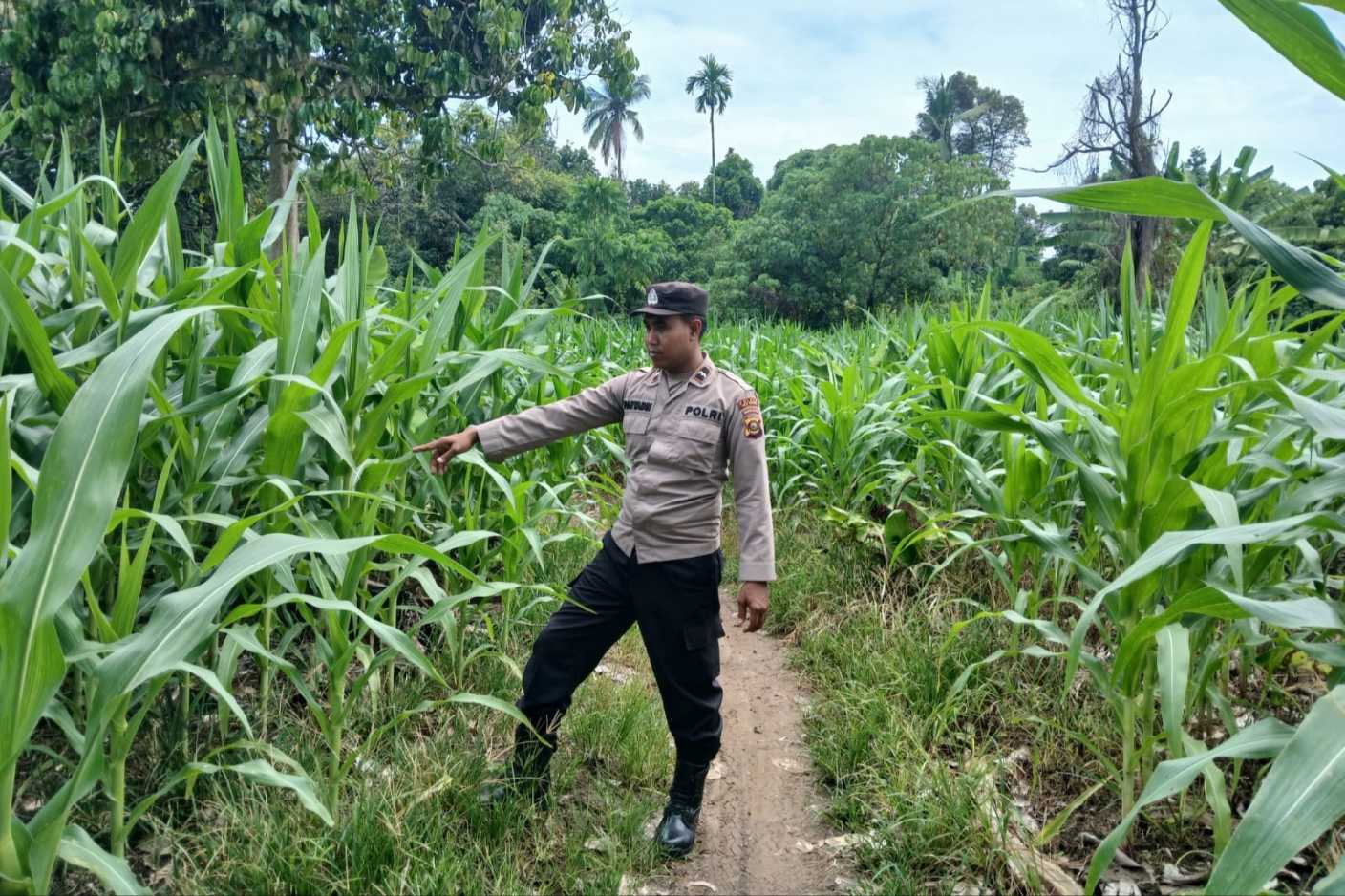 Kegiatan tersebut dilaksanakan pada Minggu (5/4/2026) sekitar pukul 08.40 WIB, dipimpin oleh Kanit Bimas Polsek BP Peliung, Aipda Faryadin. Ia turun langsung ke lapangan untuk memastikan kondisi dan perkembangan tanaman jagung yang ditanam di lahan seluas satu hektare.