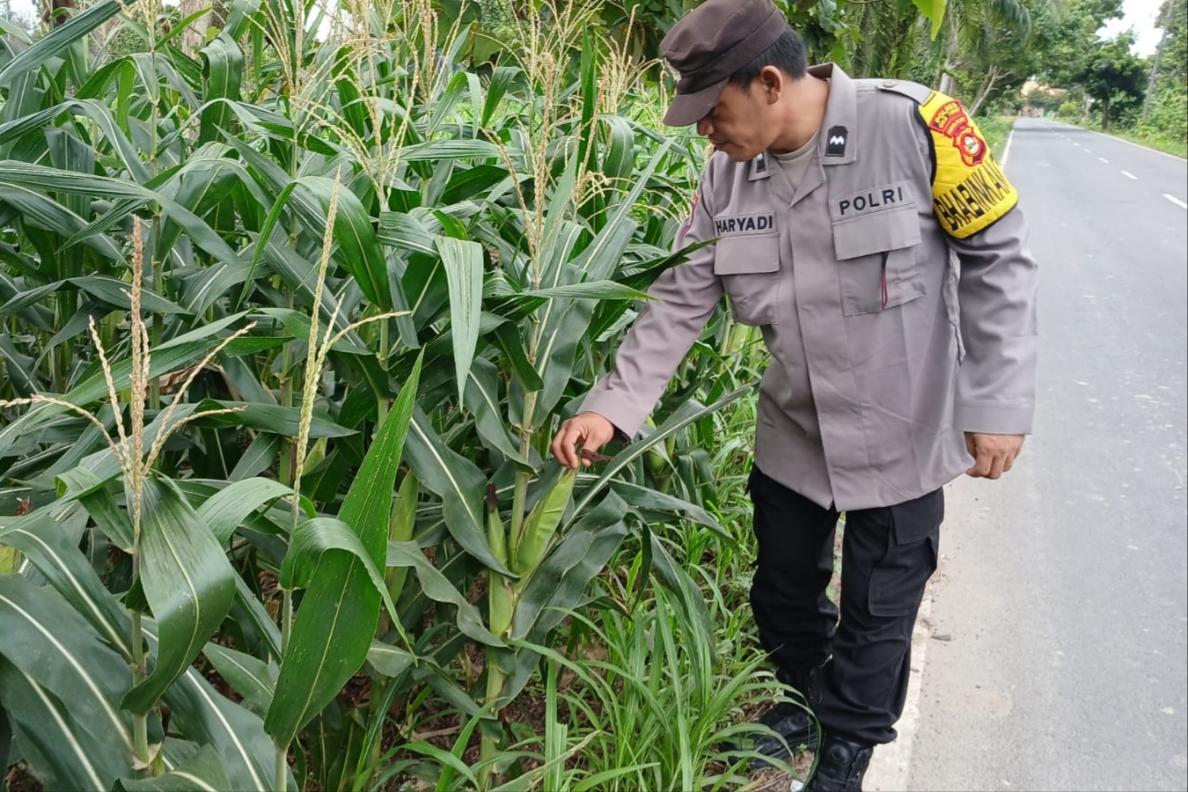Bhabinkamtibmas Polsek BP Peliung Aktif Dampingi Petani, Pantau Pertumbuhan Jagung di Desa Banu Mas