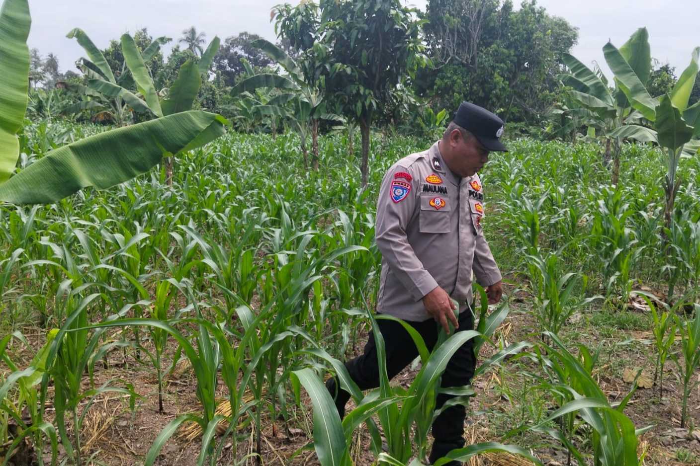 Pada Selasa (7/4/2026) sekitar pukul 08.10 WIB, Anggota Bhabinkamtibmas Polsek BP Peliung, Aipda Maulana, melaksanakan pengecekan langsung terhadap pertumbuhan tanaman jagung di lahan seluas satu hektar yang berlokasi di Desa Pulau Negara, Kecamatan BP Peliung, Kabupaten OKU Timur.