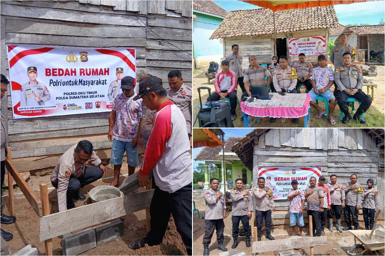 BeritaPedia.news, OKU Timur Madang Suku I — Dalam rangka menyambut Hari Ulang Tahun (HUT) Bhayangkara ke-80 tahun 2026, Polres OKU Timur Polda Sumatera Selatan melaksanakan kegiatan peletakan batu pertama program bedah rumah bagi masyarakat kurang mampu.