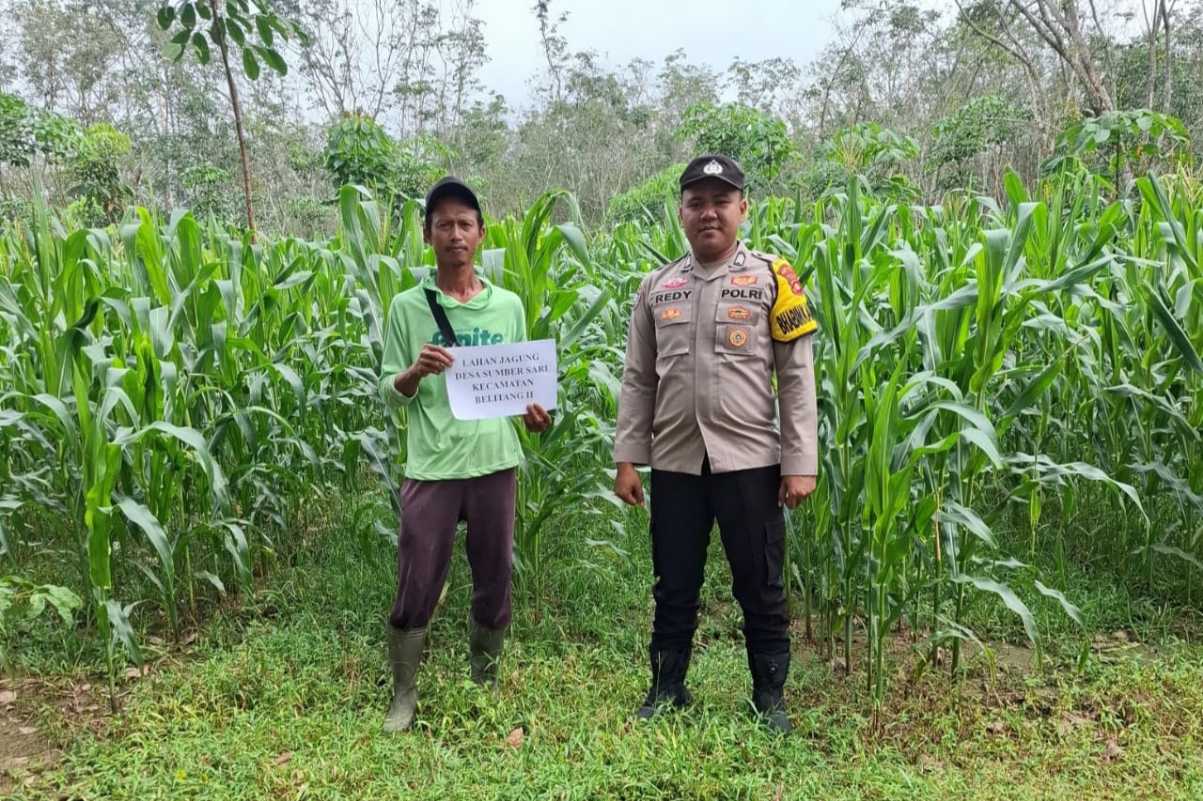 Brigadir Redy Eko Irawan, S.E melaksanakan pengecekan ketahanan pangan di lahan pertanian jagung milik Sutres (43), warga Desa Sumber Sari, Kecamatan Belitang II, Kabupaten OKU Timur.