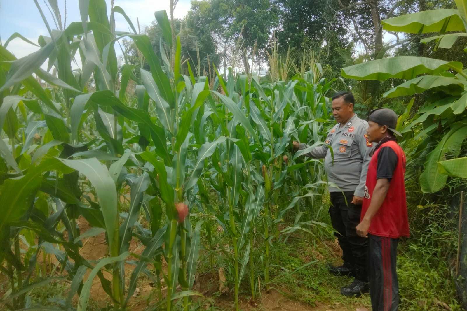 Dalam pengecekan tersebut, Aiptu Made Sudarsa melihat langsung kondisi tanaman jagung serta berdialog dengan pemilik lahan terkait proses perawatan dan kendala yang dihadapi.