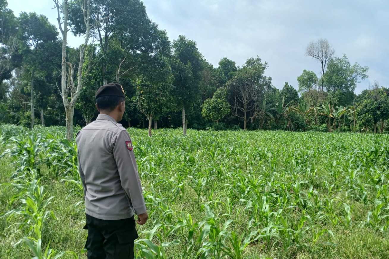 Pemantauan dilakukan langsung oleh Kanit Patroli Polsek BP Peliung, AIPTU Bambang, untuk memastikan kondisi tanaman jagung tumbuh dengan baik dan terawat.