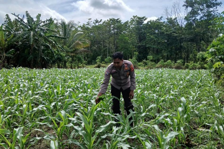 Pantau Pertumbuhan Jagung di Banu Ayu, Kanit Bimas Polsek BP Peliung Perkuat Ketahanan Pangan