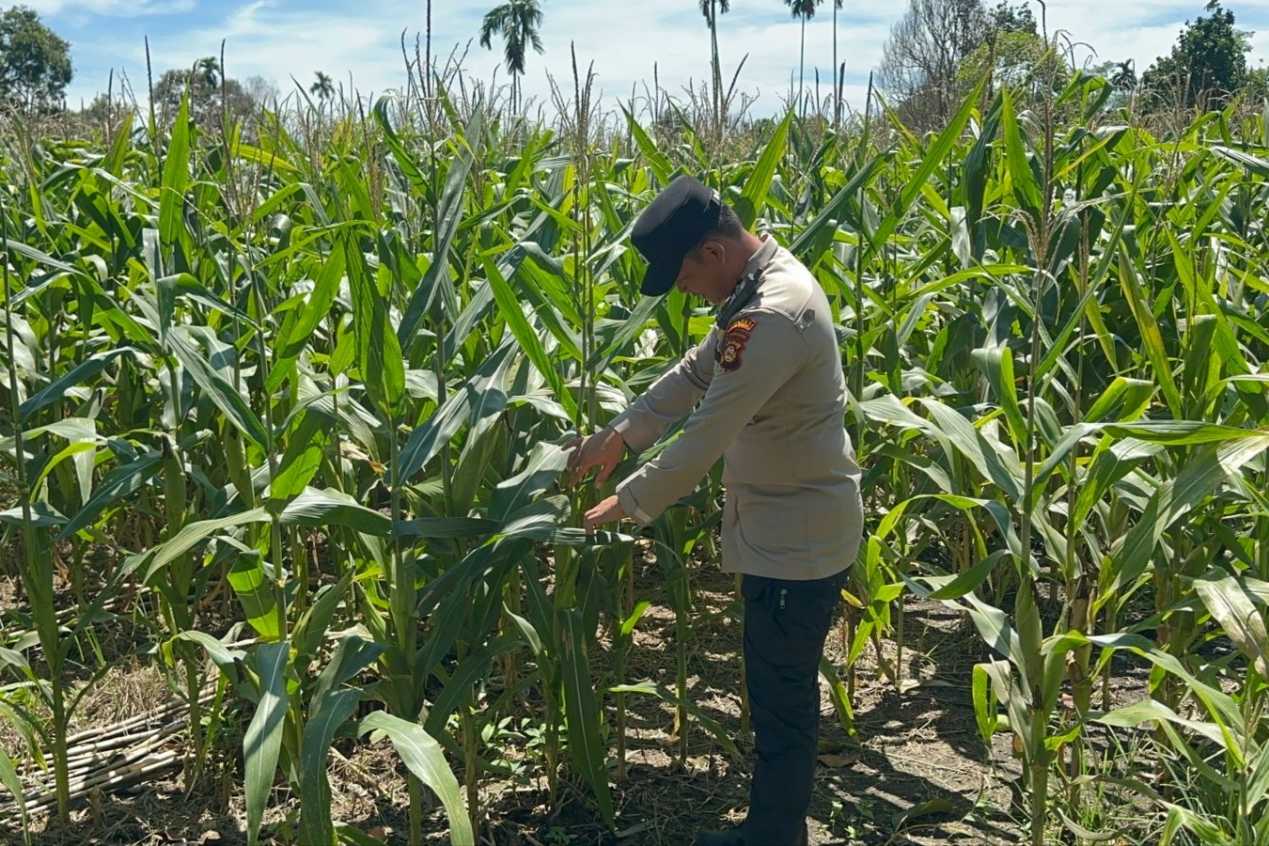 Pemantauan langsung dilakukan oleh BRIPTU Munir yang turun ke lapangan guna memastikan perkembangan tanaman jagung berjalan optimal.