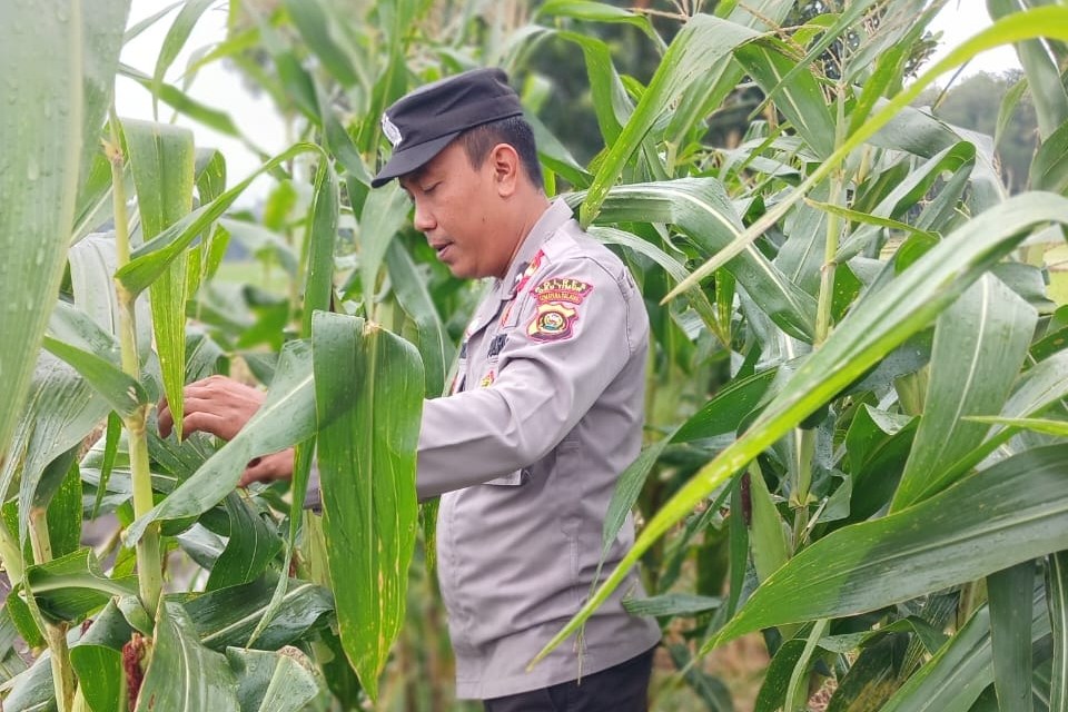 Aipda Dedy Darmanto menjelaskan, kegiatan ini bertujuan untuk memastikan pertumbuhan tanaman jagung berjalan optimal sekaligus memberikan pendampingan kepada petani.