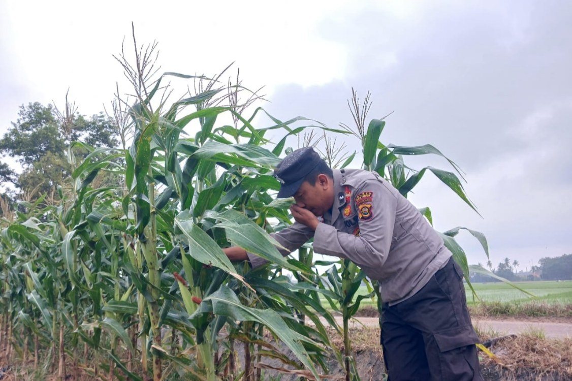Aipda Dedy Darmanto menjelaskan, kegiatan ini bertujuan untuk memastikan pertumbuhan tanaman jagung berjalan dengan baik sekaligus memberikan pendampingan kepada petani di wilayah binaan.