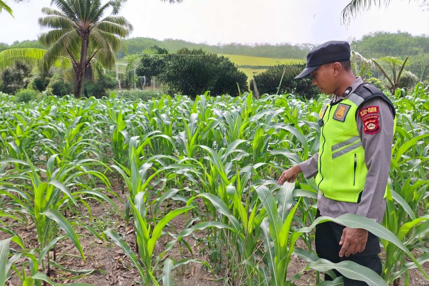 BeritaPedia.news, OKU Timur – Upaya mendukung program ketahanan pangan terus dilakukan jajaran Polsek Belitang II. Salah satunya melalui kegiatan yang dilaksanakan oleh AIPDA Aan Afprianto dengan meninjau langsung lahan pertanian jagung milik warga di Desa Purworejo, Kecamatan Belitang II, Kabupaten OKU Timur.