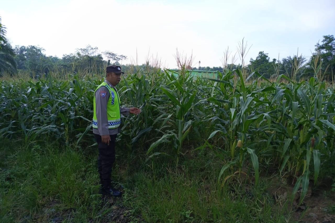 BeritaPedia.news, OKU Timur — Dalam rangka mendukung program ketahanan pangan, Bhabinkamtibmas Polsek Madang Suku I, Bripka Bobi Juanda, melaksanakan pengecekan perkembangan tanaman jagung milik warga di Desa Lubuk Harjo, Kecamatan Belitang Madang Raya, Kabupaten OKU Timur, Selasa (21/4/2026).