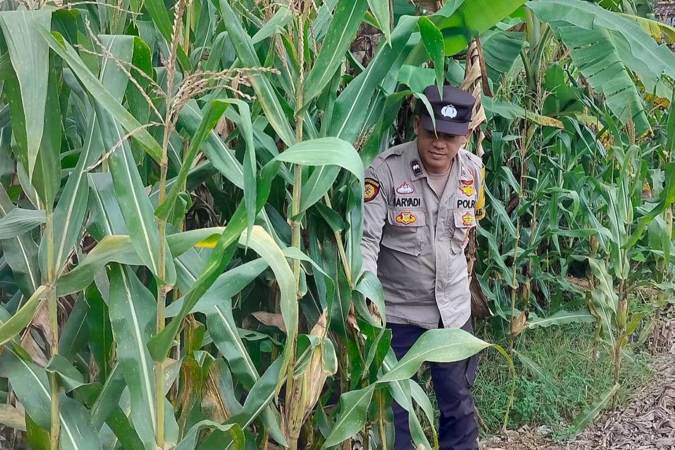 Pemantauan dilakukan langsung oleh anggota Bhabinkamtibmas, Aipda Hariyadi, yang turun ke lapangan untuk mengecek kondisi serta pertumbuhan tanaman jagung yang ditanam di atas lahan seluas satu hektare.
