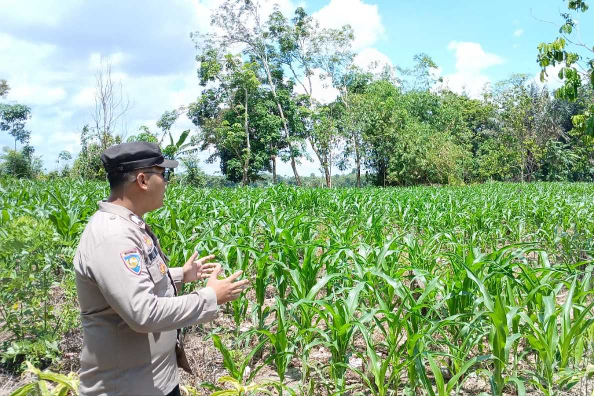 Bhabinkamtibmas Polsek BP Peliung Tinjau Lahan Jagung di Negeri Pakuan, Pastikan Pertumbuhan Optimal