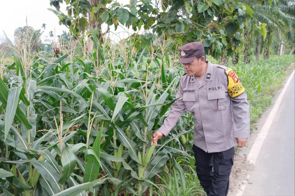 Aipda Hariyadi menjelaskan bahwa kegiatan pemantauan ini penting untuk memastikan pertumbuhan tanaman jagung berjalan optimal.
